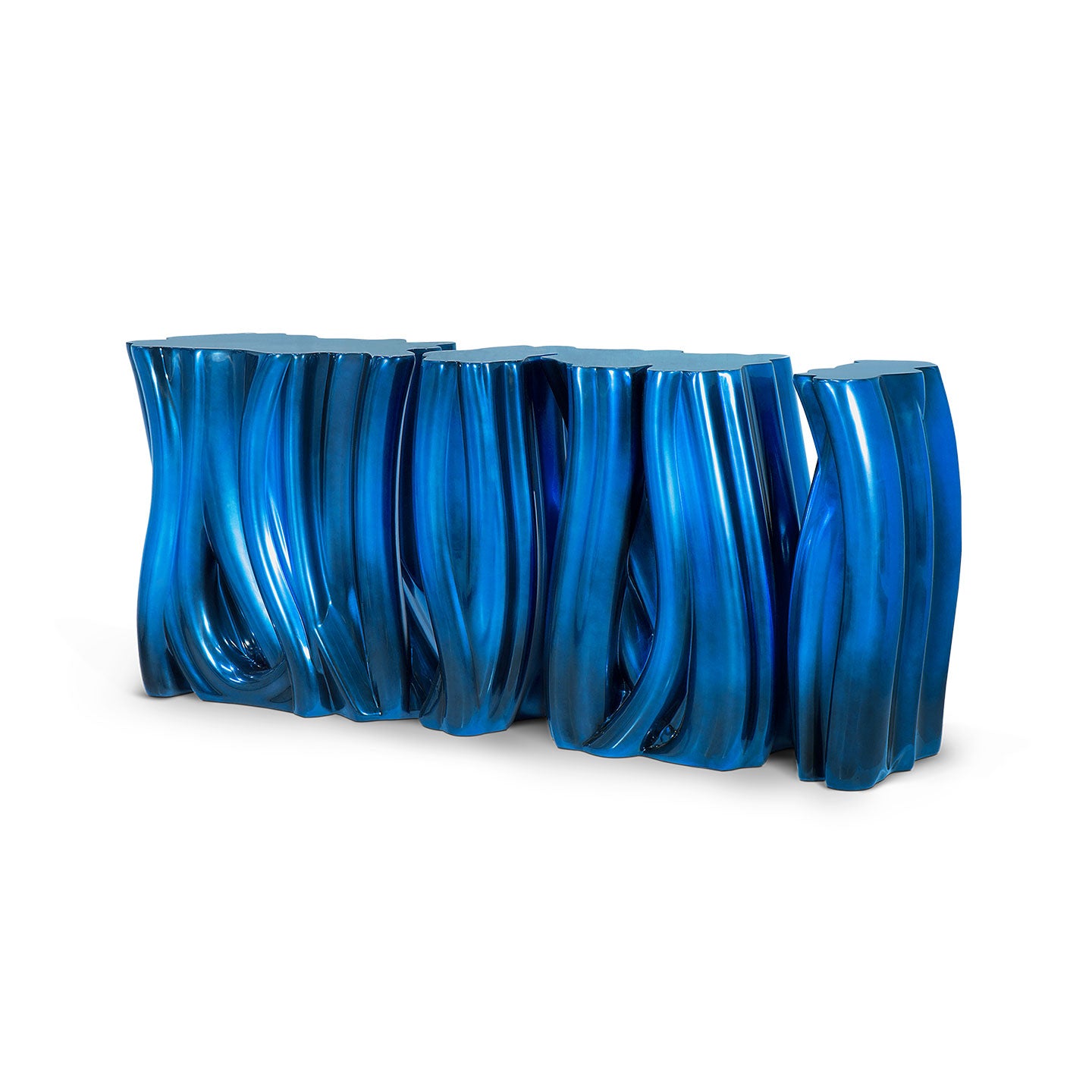 Carefully built from resin, the Monochrome is composed by three separate modules, featuring a unique and challenging design. Available in audacious purple or blue lacquer finish with a high gloss varnish coat, the avant-garde console conveys a seductive and fearless attitude.
