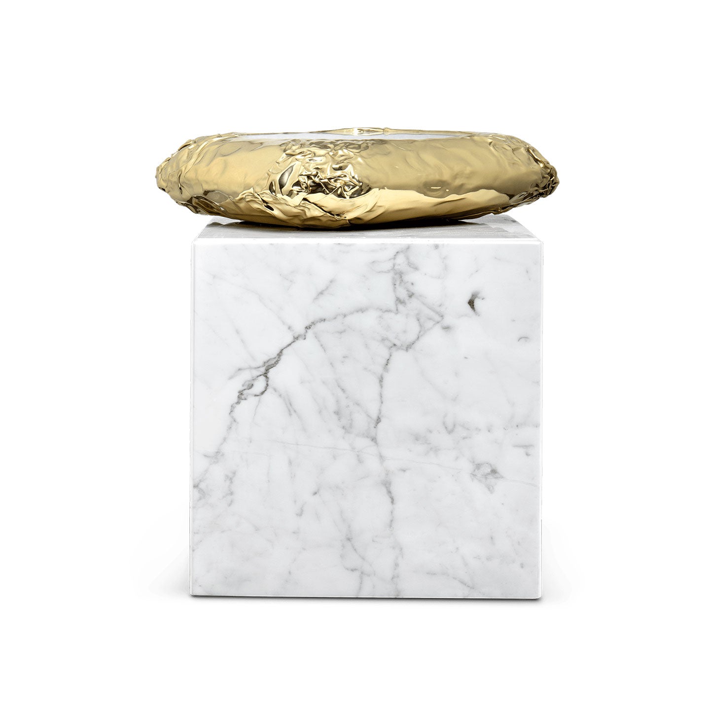 Finding inspiration in the prehistoric monument Stonehenge, positioned asymmetrically and composed by a striking variety of finishes and materials – brass and marble. This coffee table promises to elevate your living space to the next level. The metallic hues make an elegant contrast while beautifully combine and pay tribute to the Neolithic and Bronze Age.