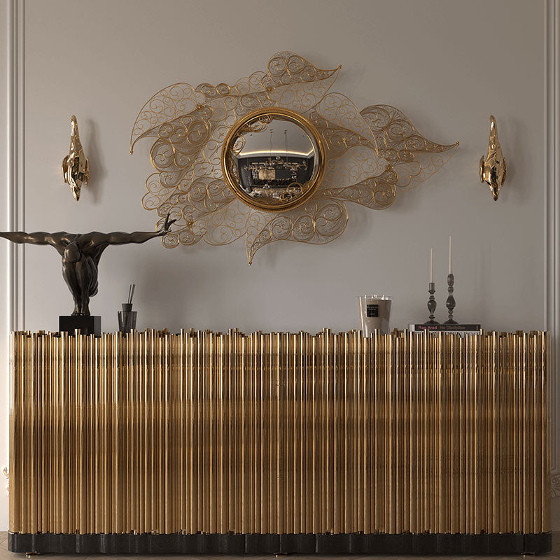 The Filigree Mirror resorts to one of the oldest jewellery making techniques known. Completely handcrafted, with each brass cord fitted with precision, the Filigree Mirror flourishes in a shape traditional to Portuguese culture and art. A jewelry technique used to solder tiny beads and twisted threads. Filigree is the most delicate technique used to work precious metals, usually of gold and silver. It is an age-old and detailed jewelry expression in which skilled artisans painstakingly solder tiny beads and twisted threads to create striking artistic motifs, suggesting often exquisite and intricate lace-like patterns.