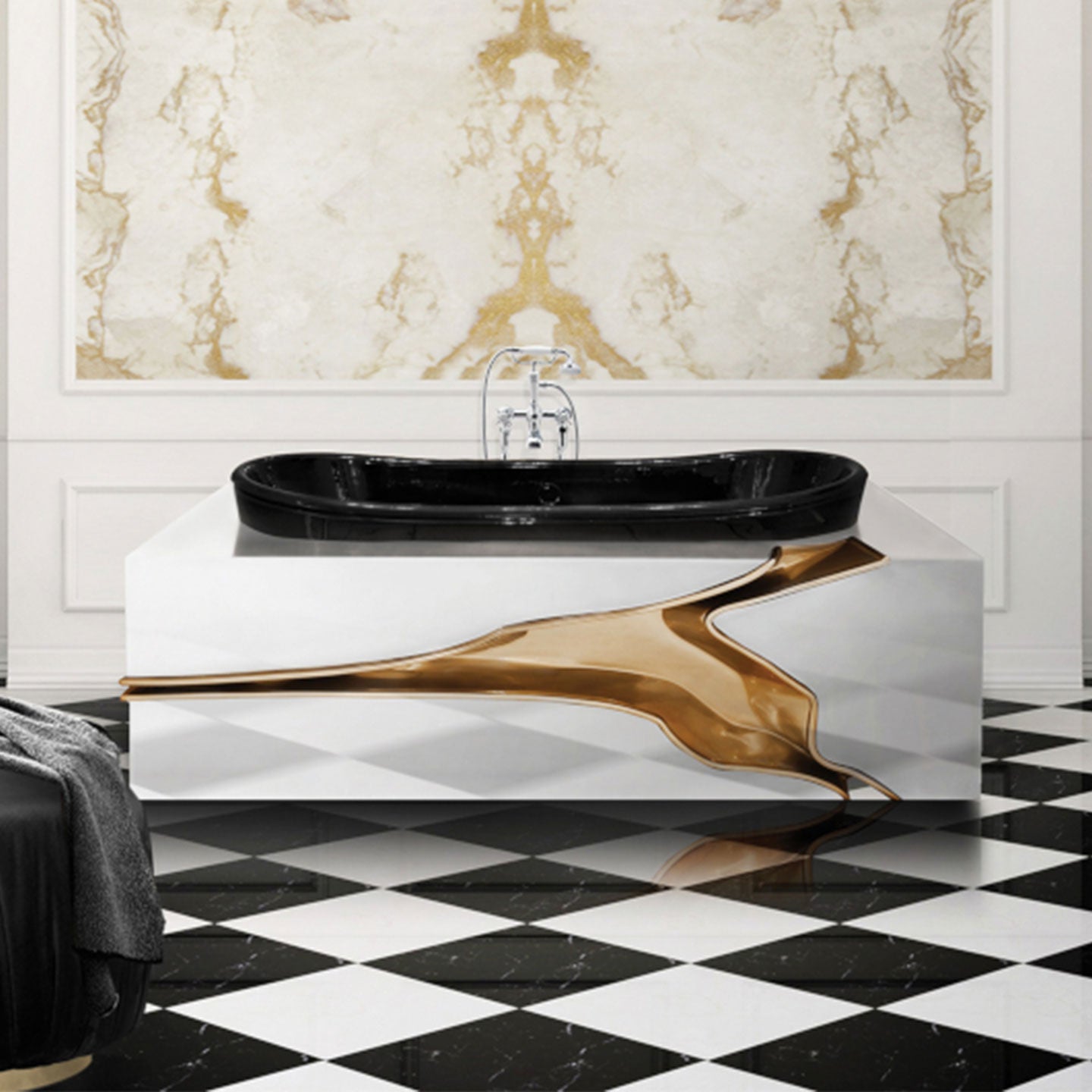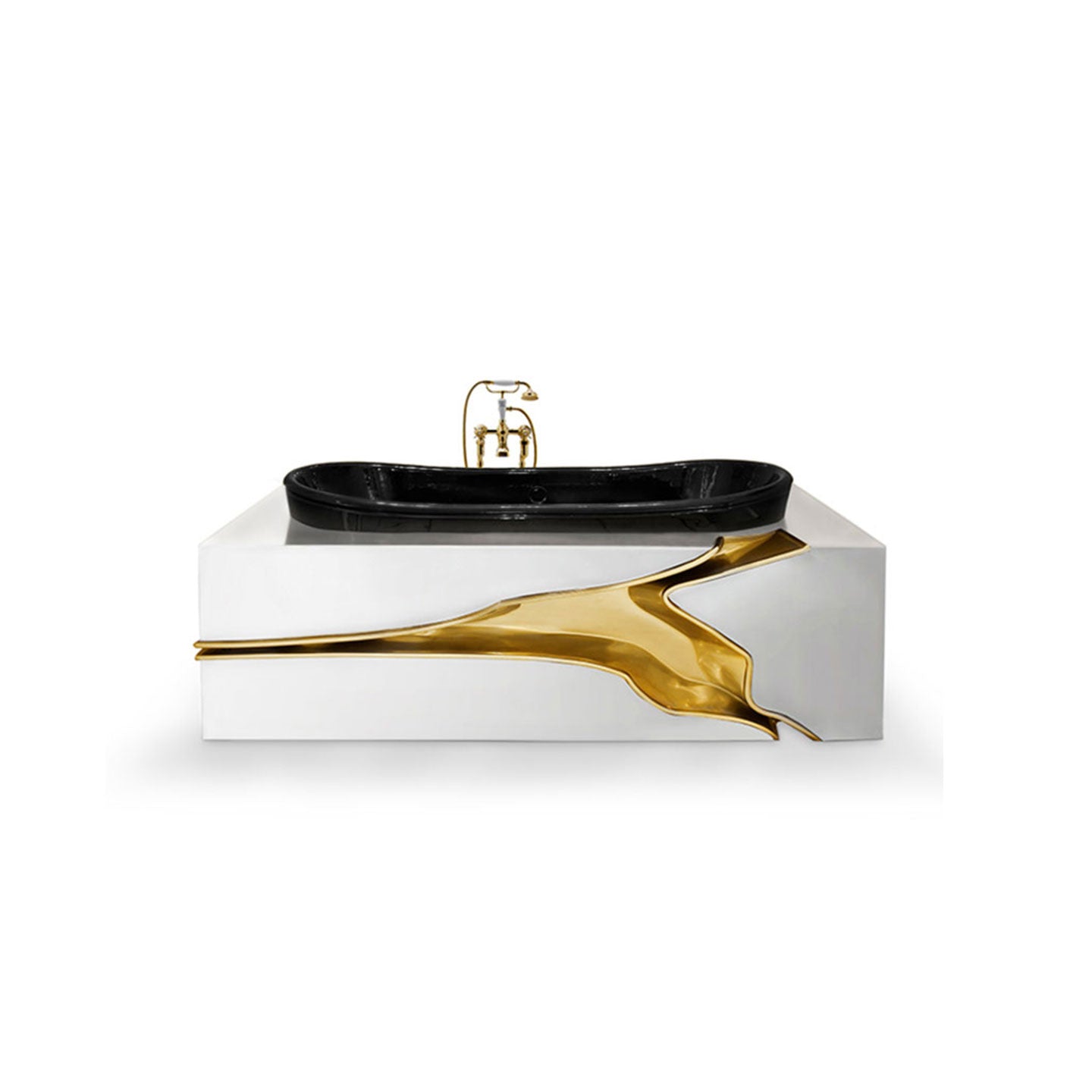 Lapiaz Bathtub is inspired in the typical karst formations produced by the dissolution of limestone rocks. This unique bathtub enhances glamorous and rich interiors with a gold-painted tear that contrast with the mirrored effect of the stainless steel. Definitely, a statement bathtub that stands out in any contemporary bathroom project.