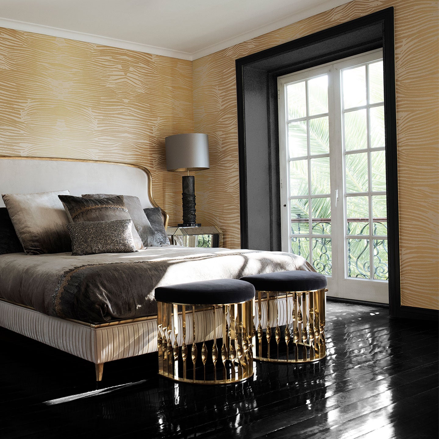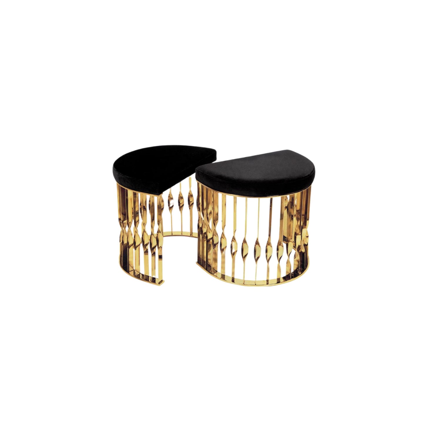 The Mandy stool will embellish any setting with its soft black velvet upholstery and a base in twisted high-gloss polished brass.