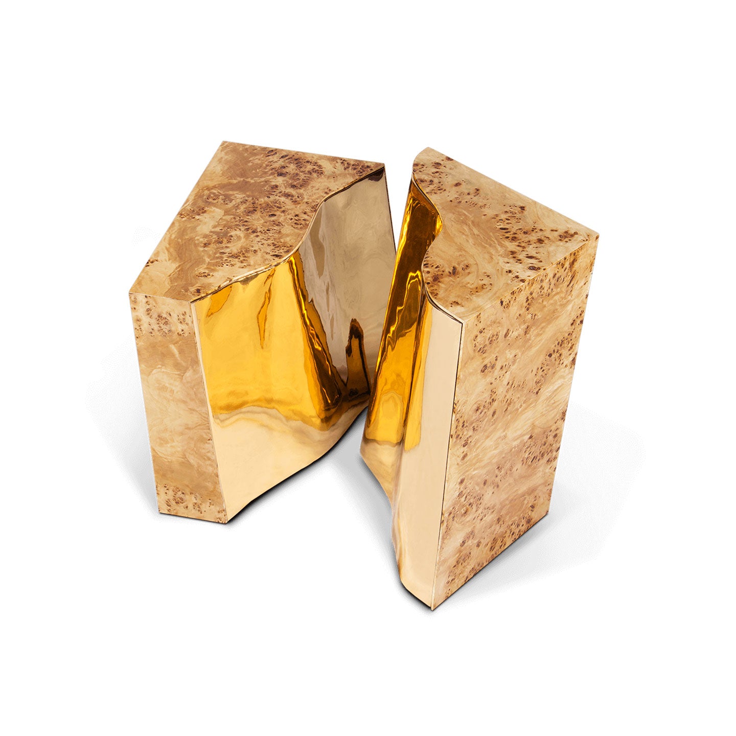 Finding beauty in the most unexpected places, this luxe side table is inspired by authentic karst formations created by surface dissolution, freezing, or thawing of dolomite rocks. Born from cold and freshly cracked to showing off the world rich, golden interior.